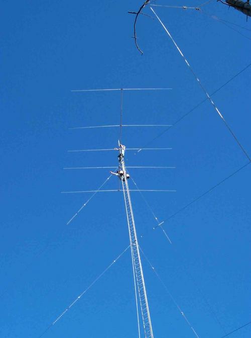 A 205CA sits perched at 153 feet on top of the Rohn 45 tower at N2MG.
